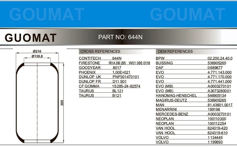 GOODYEAR 8017 de ressort pneumatique d'autobus de 1R1A390295 FIRESTONE pour NEOPLAN 100110300